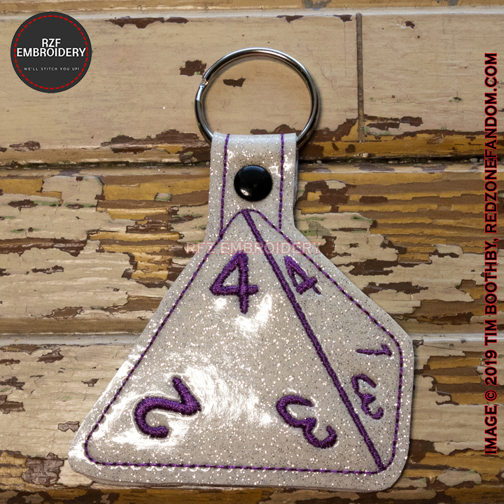 Keyfobs are machine embroidered and hand cut.  These are stock images, there could be slight color variations in the production line.  We will update photos for any major changes. These keyfobs are made from white glitter vinyl.