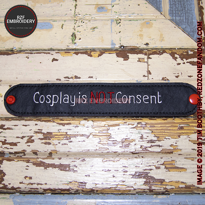 This bracelet is to help raise awareness that wearing a costume is not giving permission to treat a person inappropriately and encourage people to speak out if it happens to themselves, to speak up if it happens to others, all to help keep cosplay safe, comfortable and fun for all.