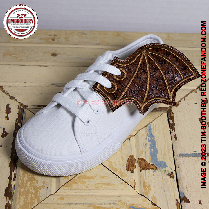 Shoe Wings are made with marine vinyl making them durable, water resistant and light weight. Each wing has TWO eyelet holes that you line up with your shoe or boot laces & string your laces through (fits most laces). Shoe wings are great Goth accessories and work on roller skates, lace up boots, cosplay shoes, kids’ shoes and much more. You are only limited by your creativity.