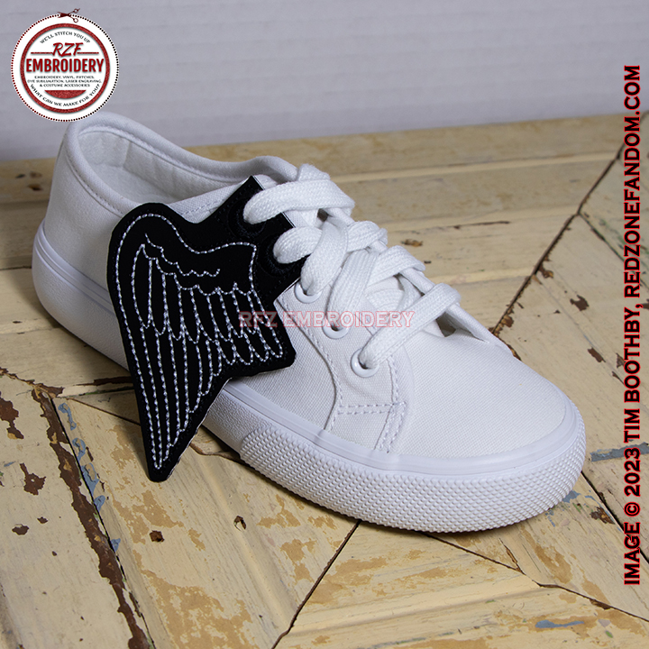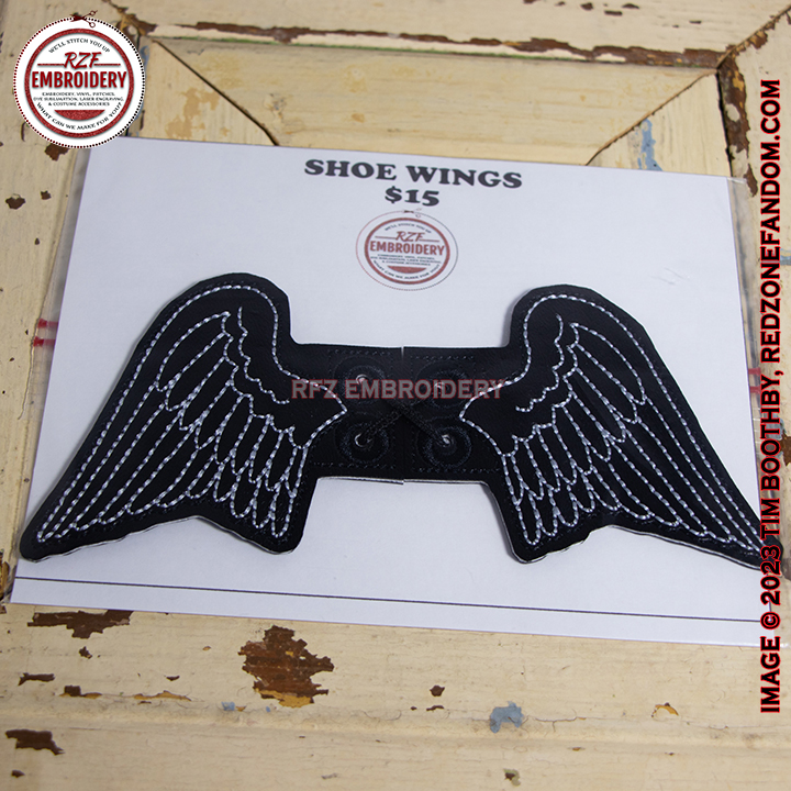 Shoe Wings are made with marine vinyl making them durable, water resistant and light weight. Each wing has TWO eyelet holes that you line up with your shoe or boot laces & string your laces through (fits most laces). Shoe wings are great Goth accessories and work on roller skates, lace up boots, cosplay shoes, kids’ shoes and much more. You are only limited by your creativity.