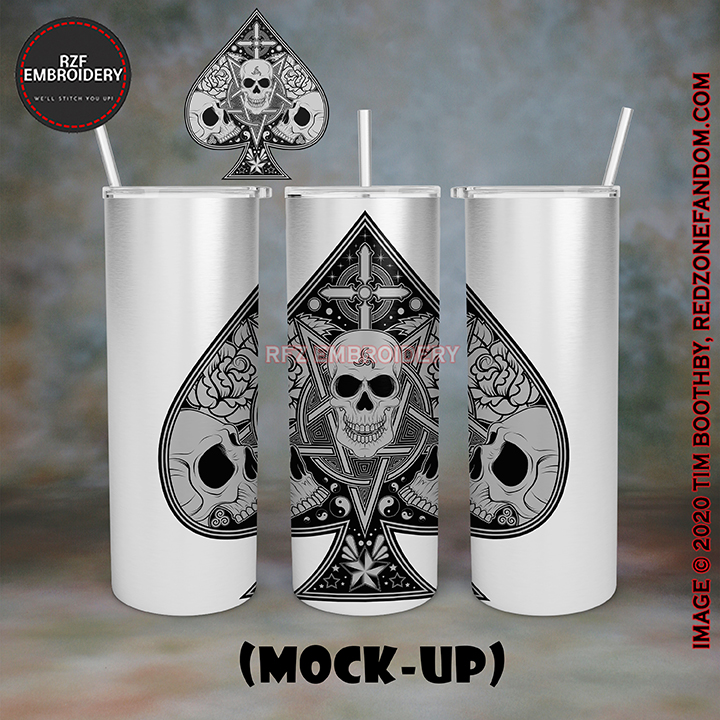 20 ounce stainless steel tumbler with sublimated Ace Skull design. These tumblers are double walled to keep beverages hot or cold for hours.
