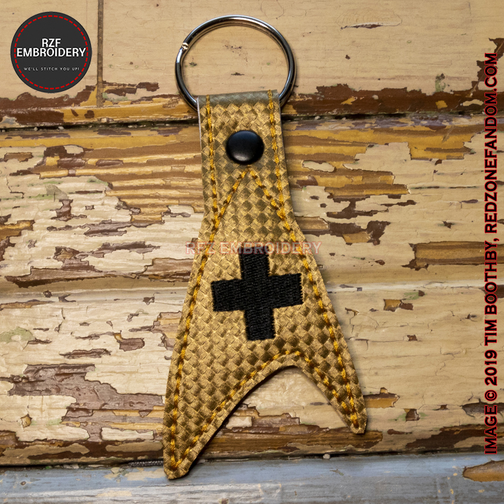 Star Trek Keyfobs are machine embroidered and hand cut. These are stock images, there could be slight color variations in the production line. We will update photos for any major changes. These Keyfobs are made with textured gold Marine Vinyl.