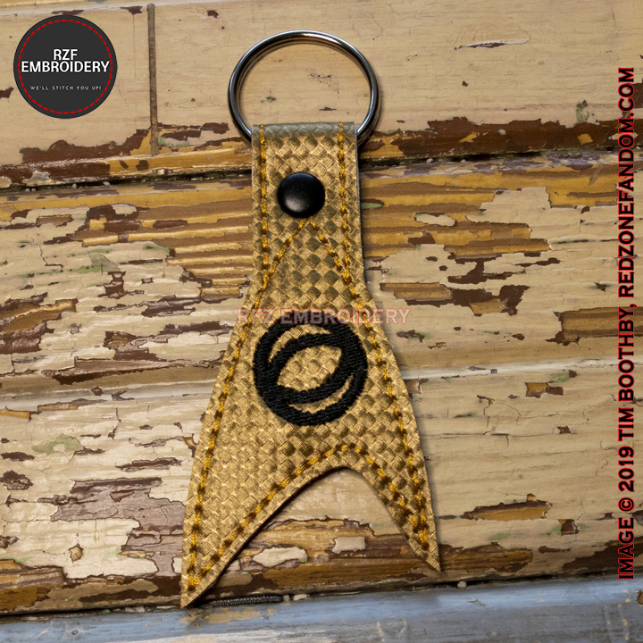 Keyfobs are machine embroidered and hand cut. These are stock images, there could be slight color variations in the production line. We will update photos for any major changes. These Keyfobs are made with textured gold Marine Vinyl.